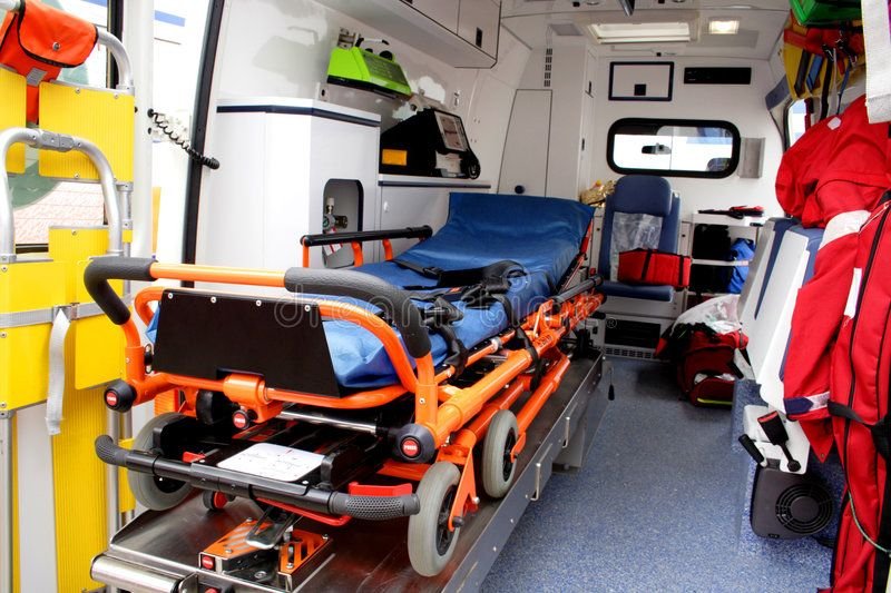 All ambulances carry emergency oxygen supply, life support drugs, nebulizers, glucometers, and basic medications. Critical care units include defibrillators and infusion pumps.